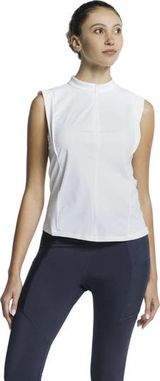 The Volley Zip Sleeveless is your ultimate fusion of style and performance on and off the pickleball court. The sleek, delicate front zipper adds convenience and elegance to your pickleball attire, while the flattering fit and sporty stand collar keep you stylish and comfortable. Crafted from a premium blend of polyamide and spandex, this top offers comfort, flexibility, and durability, with breathable, yet discreet mesh panels for cooling during intense matches and hot days. Our brand new beveled AVI logo—unique to this collection—adds a finishing touch to this top. Elevate your pickleball game with the perfect blend of fashion and function in the Volley Zip Sleeveless