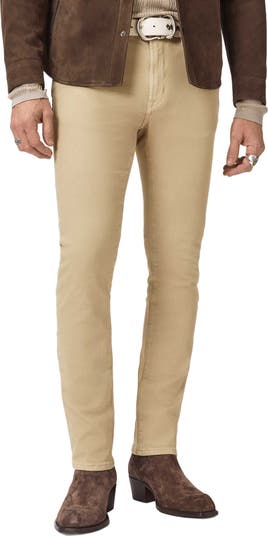 An earthy hue brings versatile style to these slim-fitting jeans and makes them a nice change from typical denim colors.