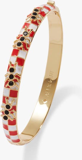 No picnic is complete without a few surprise guests, and this playful bangle brings them front and center. Designed with a classic red-and-white enamel check pattern inspired by picnic blankets, it features marching ants set with sparkling jet stones for a cheeky little twist. The easy hinge mechanism makes it a breeze to snap on and style, whether you're stacking it with other summer-ready pieces or letting it shine on its own. This one's for the fun-lovers, the detail-spotters, and anyone who likes their jewelry with a side of whimsy.