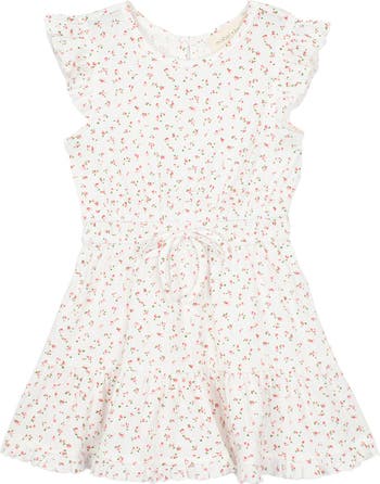 This girl's dress features a floral gauze fabric, smocked lined bodice with puffed sleeves and a playful tiered skirt. Fabric Care 60% COTTON 35% POLYESTER 5% SPANDEX Machine Wash Cold | Line Dry Do Not Bleach