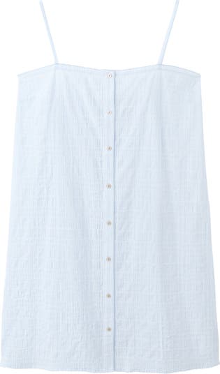 Delicate picot embroidery edges this button-front nightgown cut from lightweight cotton woven in an airy, textured grid.