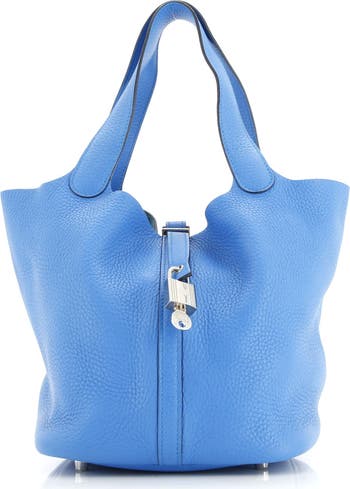 Pre-Owned Hermes Picotin Lock Bag Clemence MM, Main, color, Bleu Zanzibar