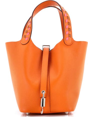 Pre-Owned Hermes Picotin Lock Bag Tressage Epsom PM, Main, color, Abricot/Rose Azalee/Gold