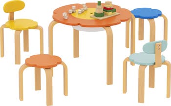 - Flower-Inspired Set for Playtime: This kids' table and chair set features 5 pieces in vibrant colors, creating a joyful spot for kids' play, reading, eating, drawing, or family reading moments, suitable for nursery, playroom, or classroom