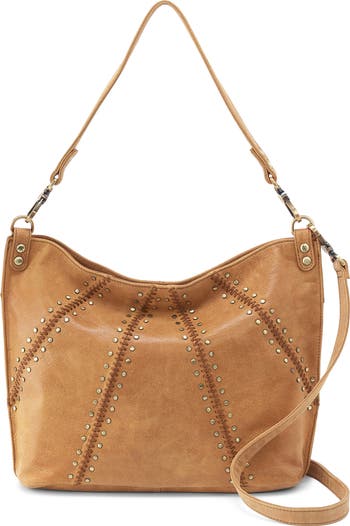 This studded and stitched slouchy bag is shaped from supple leather and easily converts from shoulder to crossbody depending on your mood.