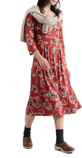 A painterly floral pattern makes a delightful statement on this stretchy organic-cotton jersey dress that's sure to be a year-round favorite.