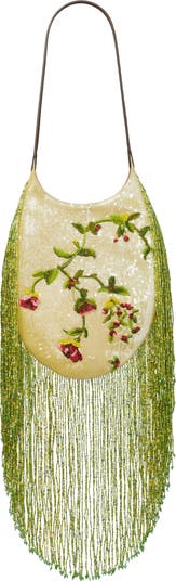 The flat oval silhouette of this striking shoulder bag is embellished with bright sequins, lighting up your outfit the moment you step out the door.