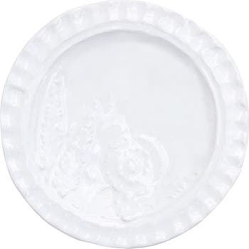 An intricately etched floral design brings artisanal charm to a stoneware canape plate that brings an Italian sense of movement and grace to your welcoming table.