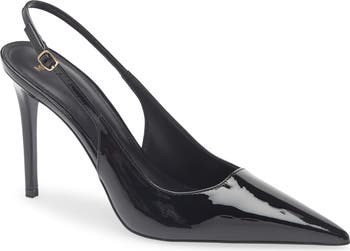 A sharp pointy toe brings sleek definition to this slingback pump set on a lofty stiletto heel for evening-ready appeal.