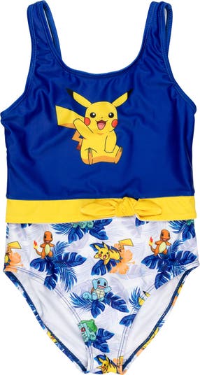 Your little girl is ready to catch 'em all in this cool Pokémon swimsuit! This stylish one-piece bathing suit features fashionable bow tie straps and a cute and colorful all-over print design of Pikachu, Charmander, Bulbasaur, and Squirtle! Made of a quick-drying material that is comfortable to wear in and out of the water, this sun-protecting swimming suit is the perfect summer essential for your Pokémon fan!