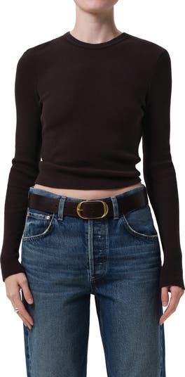 An appealing, trim-fitting waffle knit keeps you cozy in this long sleeve T-shirt made from recycled cotton.