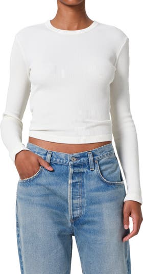 An appealing, trim-fitting waffle knit keeps you cozy in this long sleeve T-shirt made from recycled cotton.