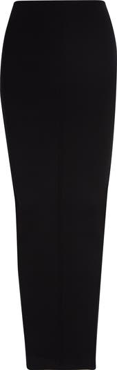 The iconoclastic designer's otherworldly drama is translated to alluring effect in this compact-knit maxi skirt that pivots between a fully covered front and an exaggerated slit at the back, culminating in a memorable exit.