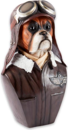 Aviation fans will love the intricate details of this pilot dog bust that makes a playful addition to a desk or shelf.