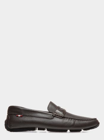 Casual and timeless, the Pilot driver is crafted with precision in grained bovine leather. Tubular Blake construction brings step-in comfort to this shoe, uniting the upper to a split rubber sole. A Bally logo trims the penny saddle and a small Ribbon has been placed on each side.