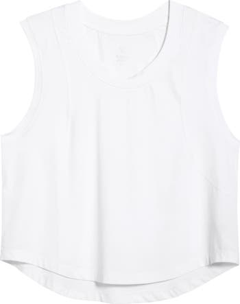 Lightweight pima cotton keeps you cool and dry through every yoga session in this cropped tank designed from four-way-stretch fabric with curved seams for a flexible fit.