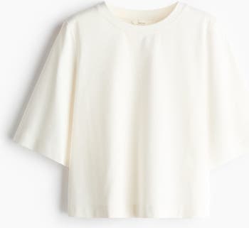 Loose-fit top in heavy pima cotton jersey with a round, rib-trimmed neckline and elbow-length sleeves.