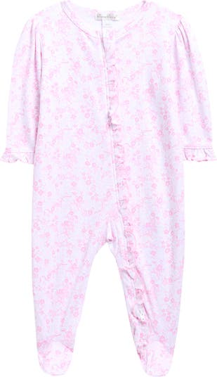 Supersoft pima cotton ensures baby will be comfortable in this frilly footie secured with a front zip closure for quick changes.