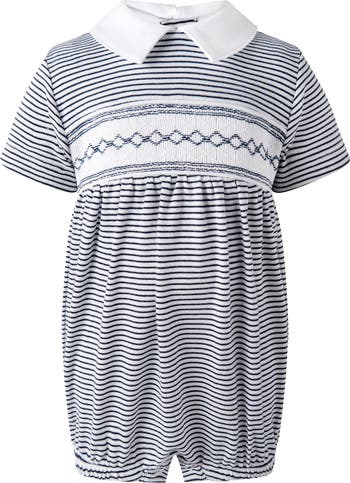 A timeless essential with a refined touch, the Pima Stripe Smocked Bubble is designed for both comfort and classic style. Crafted from ultra-soft Pima cotton, this bubble features delicate navy and white stripes, offering a fresh, heritage-inspired look perfect for warm-weather days.