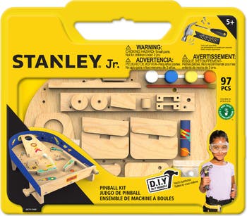 Bring the excitement of classic arcade fun home with the Stanley Jr. Pinball Machine Kit. This engaging DIY kit allows kids to build and decorate their very own working wooden pinball machine, combining creativity with hands-on learning.
