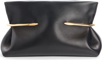 Givenchy's new creative director Sarah Burton's first bag for the label is here: let us introduce the Pinch Bag. Refined and elegant with sharp, structured lines, the polished calfskin-leather style gets its name from its golden hinge hardware that gently pinches the sides of its subtle east/west silhouette.