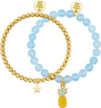 Let your wrist game shine with this little band of awesomeness. This semi-precious gemstone and gold-plated bracelet duo is the perfect way to show off some unique style and personality. Made with love in CA from super comfy materials, these children's bracelets are the ultimate accessory for school, playdates, and everything in between. Each kid's bracelet is delicately designed to be mixed, matched, and stacked for endless accessorizing. This item comes pre-packed on a card perfect for gifting.