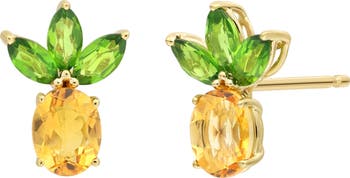 Sweeten your look with these citrine and chrome diopside stud earrings handcrafted to resemble pineapples.