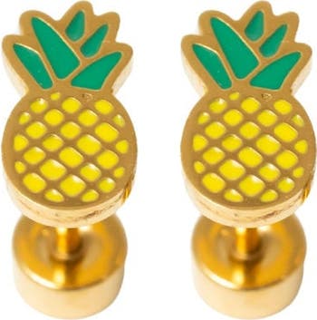 Sweet pineapple stud with a gold finish and vibrant enamel detailing. Complete with a secure screw-back post for easy, all-day wear!