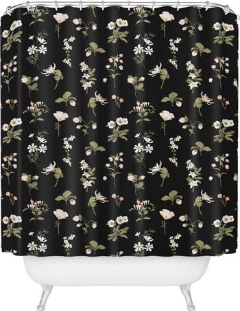 Sprightly blooms pop off the black background of a shower curtain that adds a touch of old-world charm to your bathroom decor.