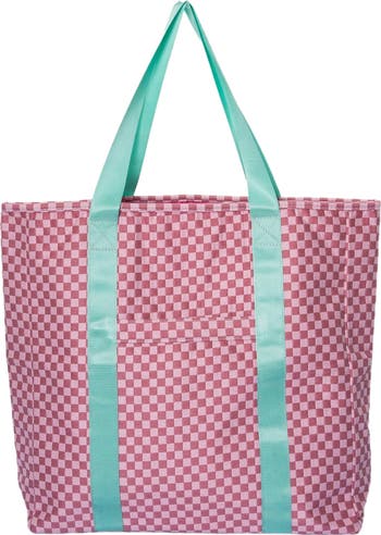 Pink and Pink Checkered Tote Bag Polyester Pink