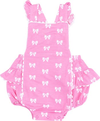 Ruffles and rickrack trim sweeten this bow-print bodysuit that will keep baby cool and cute on sunny days.