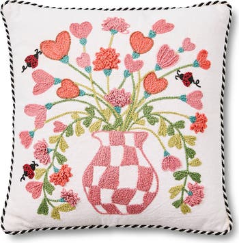 Pink Check Hearts Bouquet Accent Pillow