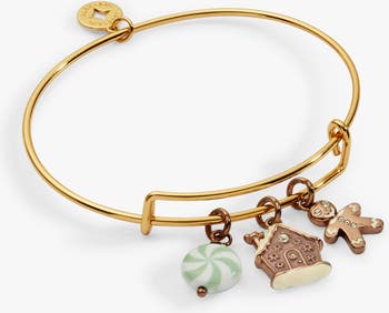 Celebrate the festive season with this playful charm bangle, specially designed to bring holiday cheer to your wrist. It showcases a vibrant green peppermint charm that adds a pop of color, paired with an adorable enamel gingerbread woman full of character. Completing the trio is a delightful enamel gingerbread house, enhanced with a sparkling stone that catches the light beautifully. This whimsical combination makes it the perfect accessory to spread joy and warmth throughout your holiday celebrations.