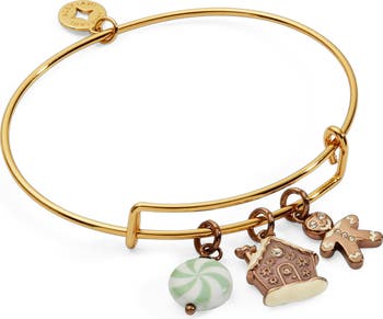 Celebrate the festive season with this playful charm bangle, specially designed to bring holiday cheer to your wrist. It showcases a vibrant green peppermint charm that adds a pop of color, paired with an adorable enamel gingerbread woman full of character. Completing the trio is a delightful enamel gingerbread house, enhanced with a sparkling stone that catches the light beautifully. This whimsical combination makes it the perfect accessory to spread joy and warmth throughout your holiday celebrations.
