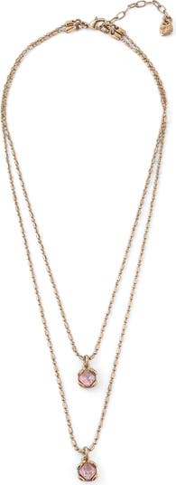18K gold-plated necklace with two vibrant pink crystals spaced across a clean curved collar.