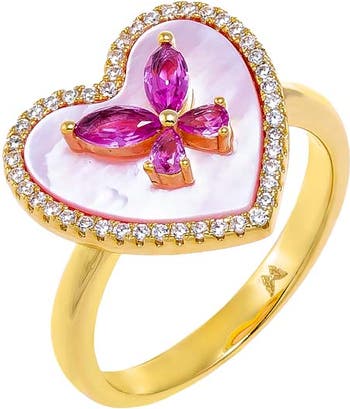 BY ADINA EDEN Pink CZ Butterfly Heart Stone Ring, Main, color, Pink Mother Of Pearl