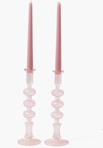 - Set Includes: x2 Gisele Pink Candle Holders
