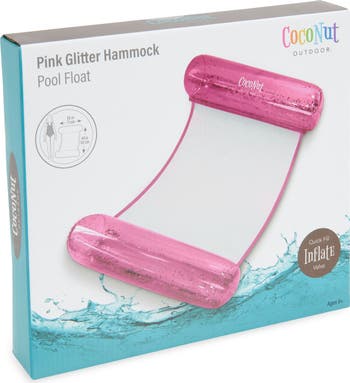 Relax in style while taking in some sun rays on this glittery, hammock-style pool float durably made from heavy-duty vinyl for a playful addition to your summery adventures.