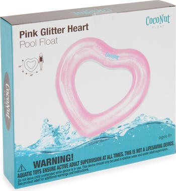Relax while taking in some sun rays on this glittery pink heart pool ring durably made from heavy-duty vinyl for a playful addition to your summery adventures.