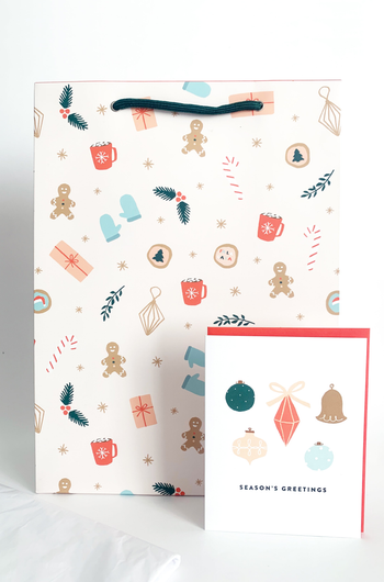 Pink Holiday Pattern Gift Bag Card Set