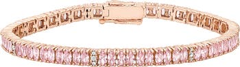 Hand-set pink oval and white round cubic zirconia illuminate this romantic tennis bracelet crafted from sterling silver and plated in warm 18-karat rose gold.