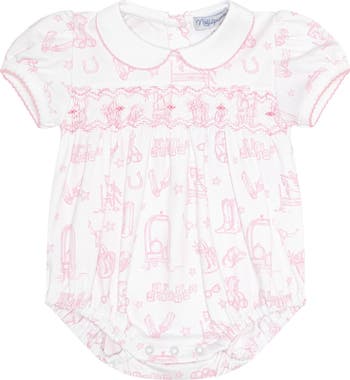 This hand-smocked bubble brings together Southern charm and timeless craftsmanship. Made from the softest Peruvian Pima cotton, it features delicate hand embroidery and our exclusive Texas-inspired toile print. The lightweight fabric keeps baby cool, while the bubble silhouette allows for easy movement. Snaps at the bottom ensure fuss-free changes. A precious choice for sunny days or special occasions.