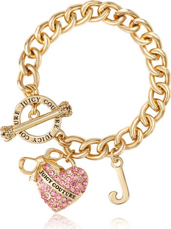 Sweet and bold. A chunky curb-chain bracelet is finished with a sparkly pink pavé heart charm and easy toggle closure-a throw-on statement you'll wear on repeat. Stack it with bangles for maximum Juicy vibes.