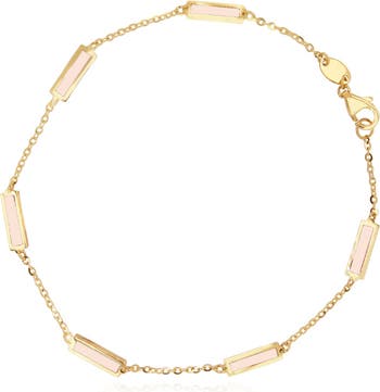 The Lovery Fine Jewelry Pink Pearl Bar Chain Bracelet, Main, color, Pink Pearl