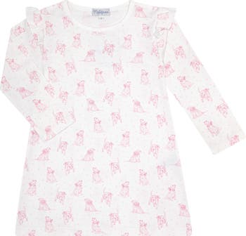 Crafted from luxurious Pima cotton, this dress is perfect for twirling, exploring, or cuddling. The sweet puppy print in soft pink adds a playful touch, while the breathable fabric keeps your child comfortable all day. Delicate trim and a relaxed silhouette ensure both elegance and practicality. Designed to be worn and loved.
