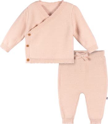Made from luxuriously soft viscose, our scalloped sweater set offers exceptional comfort with just the right amount of stretch for little ones on the move. The easy pull-on pants include an adorable decorative bow, while faux wood buttons on the top simplify dressing. Delicate scalloped trim adorns the neckline, cuffs, and ankles, bringing a whimsical touch to this cozy outfit. Let baby girl play in style and comfort with this charming scalloped sweater set!