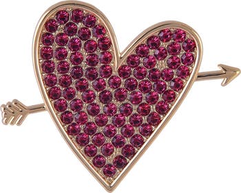 Add a pop of romantic sparkle with this Pink Stone Heart Valentine’s Day Pin, beautifully accented with a polished gold tone arrow through the center. Sweet, sparkly, and full of charm, it’s the perfect accessory for jackets, bags, scarves, or gifting to someone special. A darling accent piece that brings instant Valentine's Day magic to any outfit.