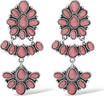Beautiful silver-tone earrings with large pink stones arranged in a symmetrical design for a feminine touch.