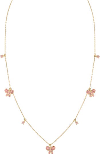 Pink Tourmaline Butterfly Charm Station Necklace