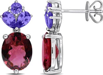 Pink Tourmaline & Tanzanite Drop Earrings 14K